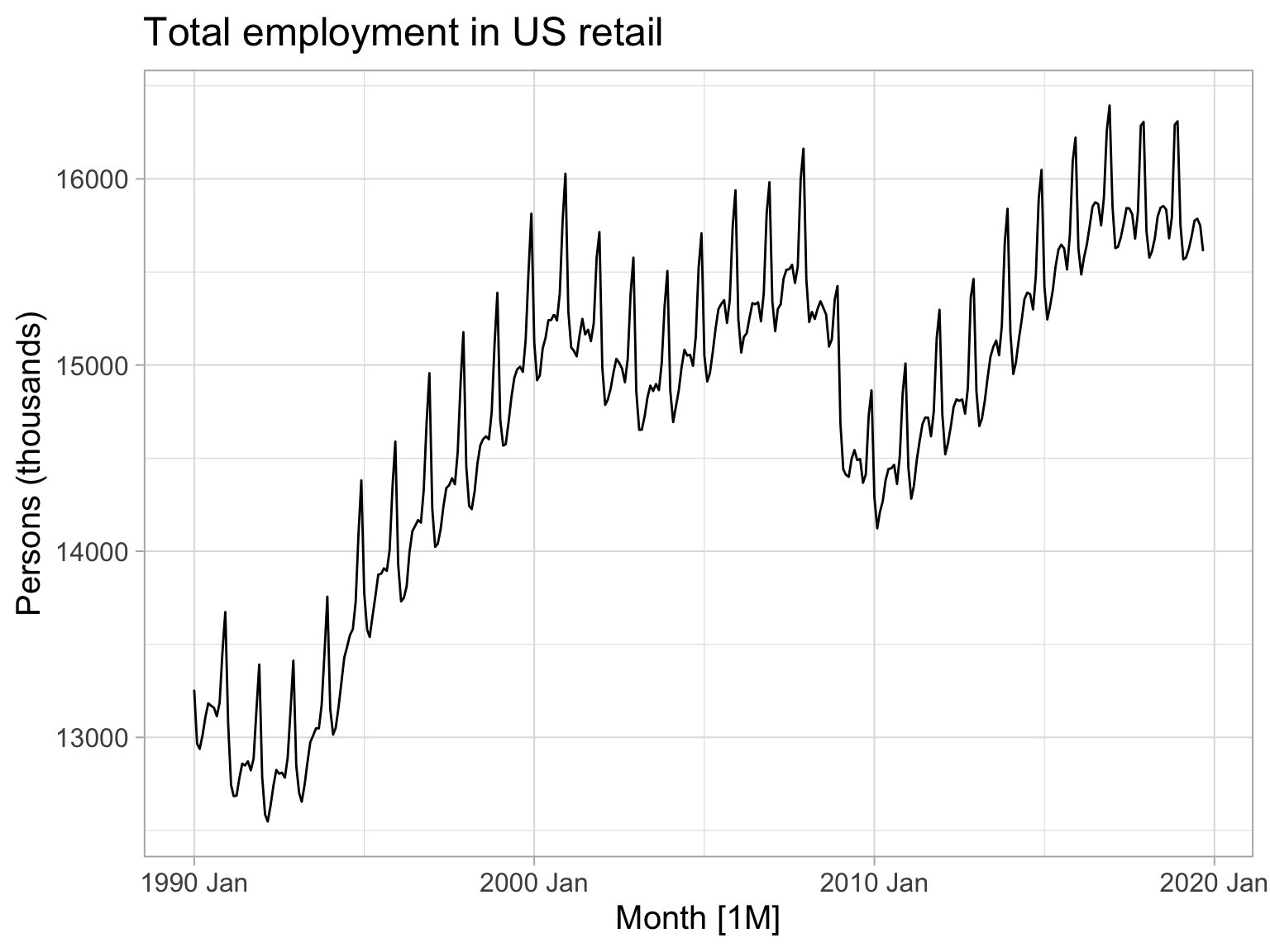 prison <- readr::read_csv("https://OTexts.com/fpp3/extrafiles/prison_population.csv")prison <- prison %>%# you need to declare the time objectmutate(Quarter =yearquarter(Date)) %>%select(-Date) %>%# note that the key can be multivariateas_tsibble(key =c(State, Gender, Legal, Indigenous),index = Quarter)prison