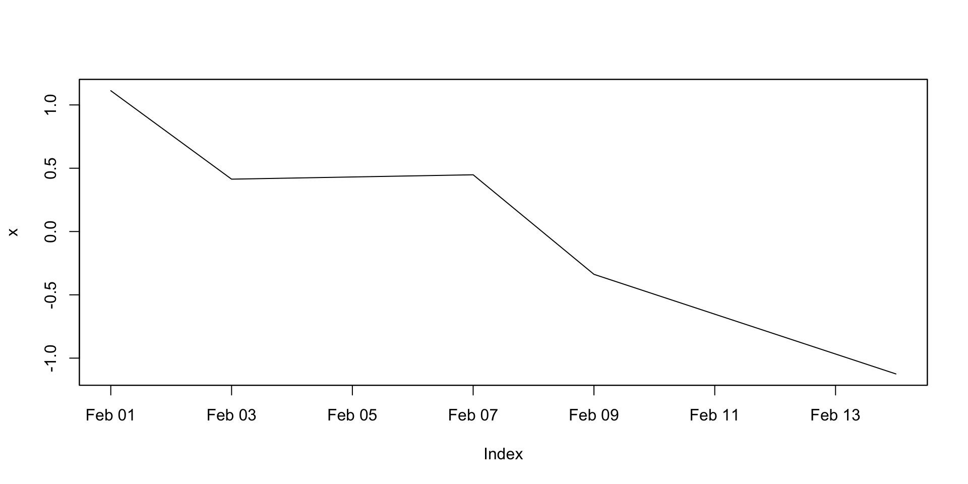 y <-tibble(Year =2015:2019,Observation =c(123, 39, 78, 52, 110))y <- y |>as_tsibble(index = Year)y